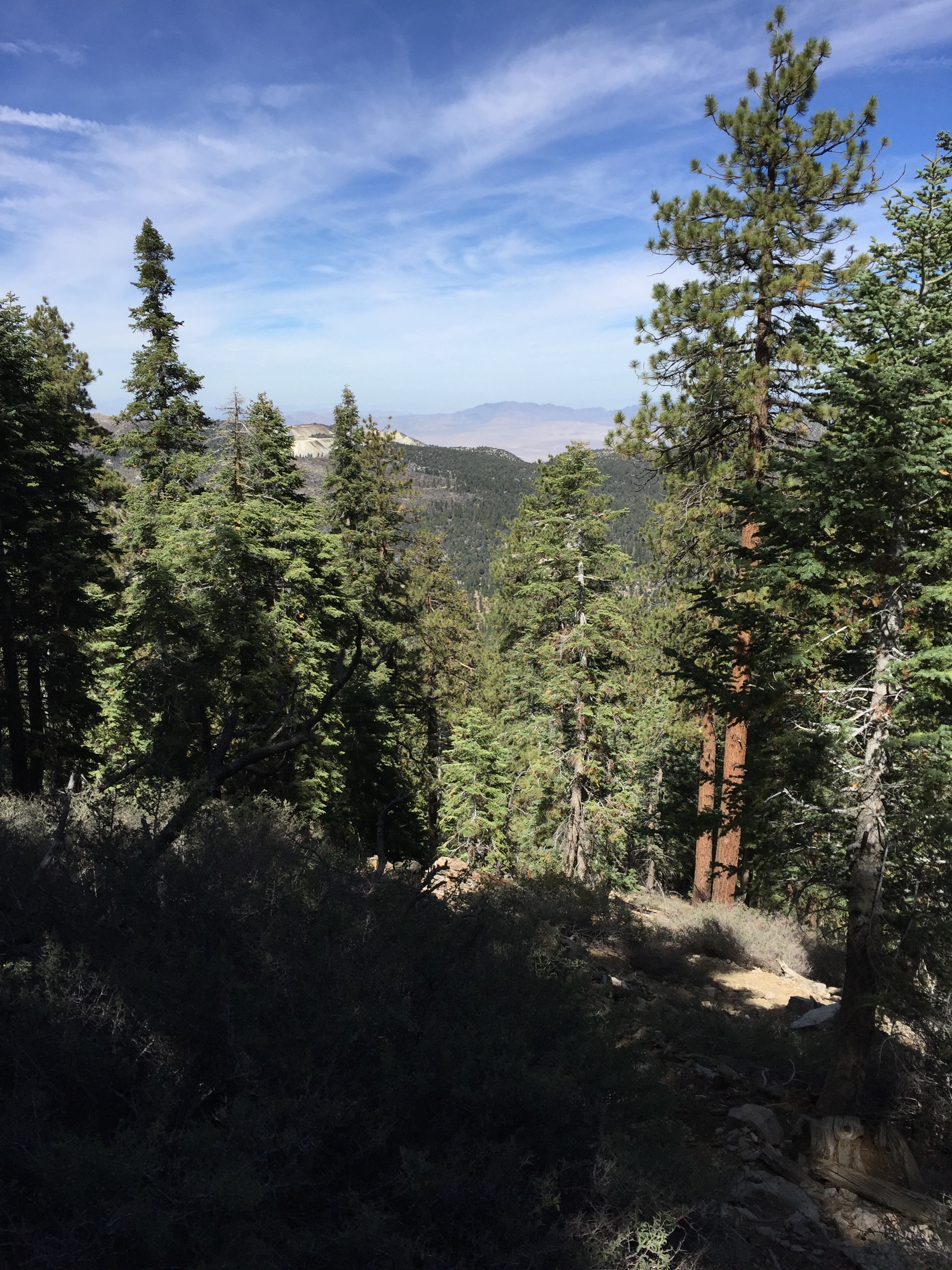The peak is pretty uneventful and flanked on all sides by trees which mask any easy view of Big Bear Lake or any easy landmark to get a bearing or a sense of place.